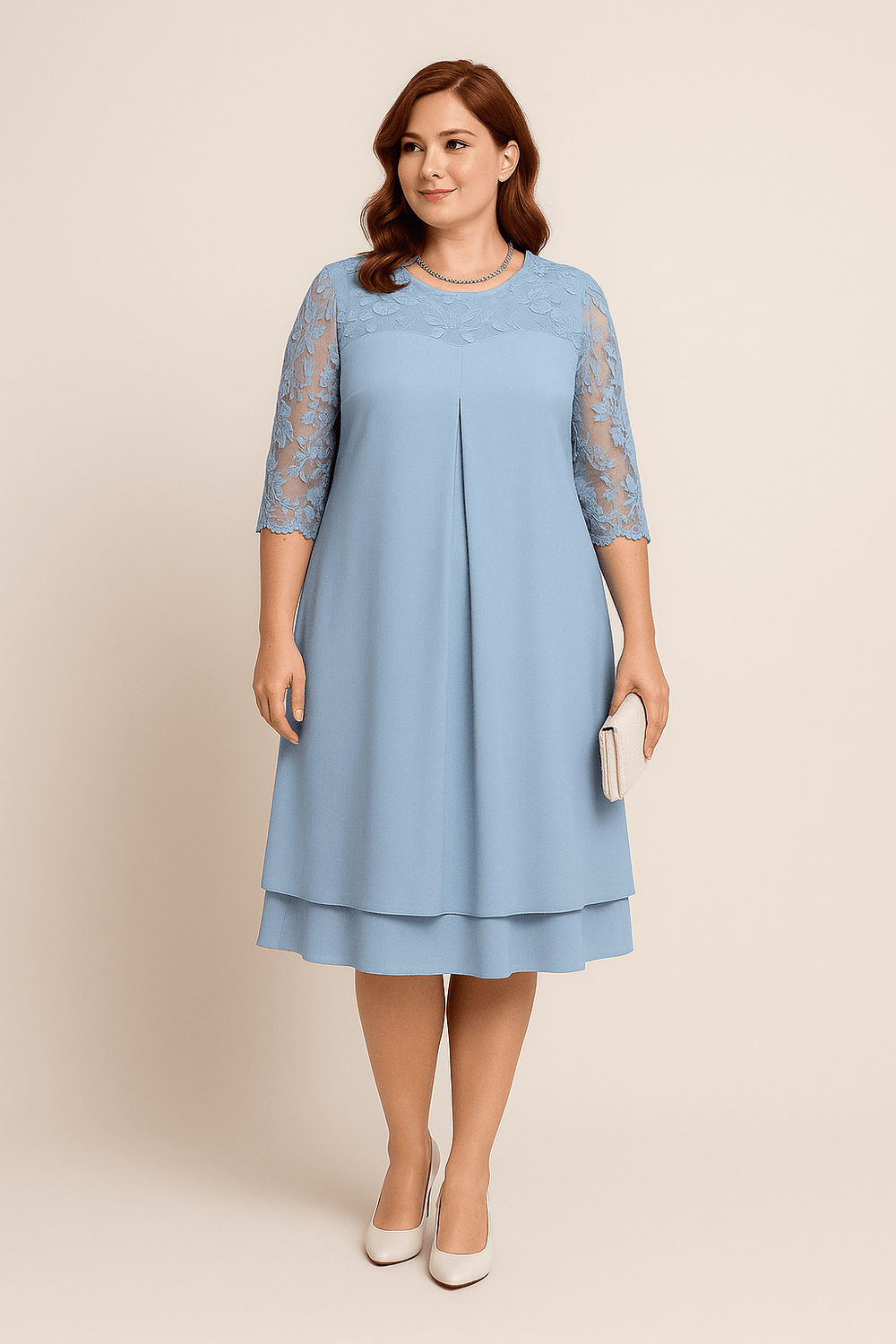 Unlock your confidence in the Women's A-Line Dress - Knee Length - Sheer Embroidered Mid Sleeves - Layered Skirt. Its cotton-style weave caresses your skin like a whisper, evoking the freedom of a warm breeze on sunlit afternoons. Imagine the admiring glances as you move, feeling poised at every step. Designed to sculpt and flatter, it cinches softly at the waist, celebrating your silhouette without concealment. This is more than a dress—it’s a moment of transformation, where comfort meets allure.