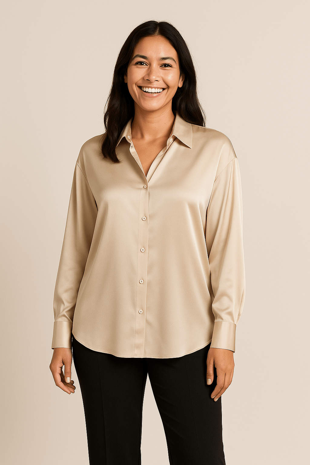 It’s become my favourite go-to when I want something smarter but still comfortable. The quality feels elevated, and the details are subtle but intentional. I’ve worn it to meetings, dinners, and even packed it for weekends away. It folds beautifully and doesn’t crease easily, which makes it as practical as it is beautiful. If you’re looking for a UK women’s silk shirt that works day to night, this one’s it.